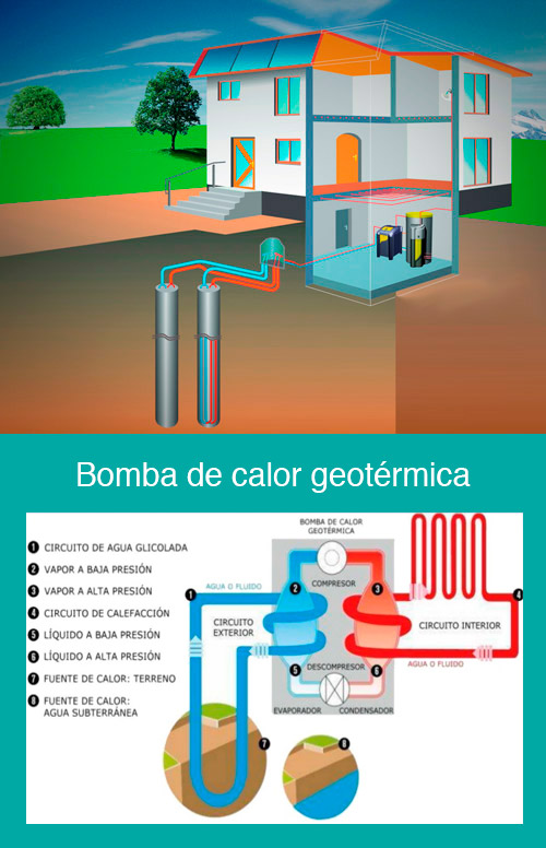 Evaporador: Absorbe el calor del subsuelo o del entorno.